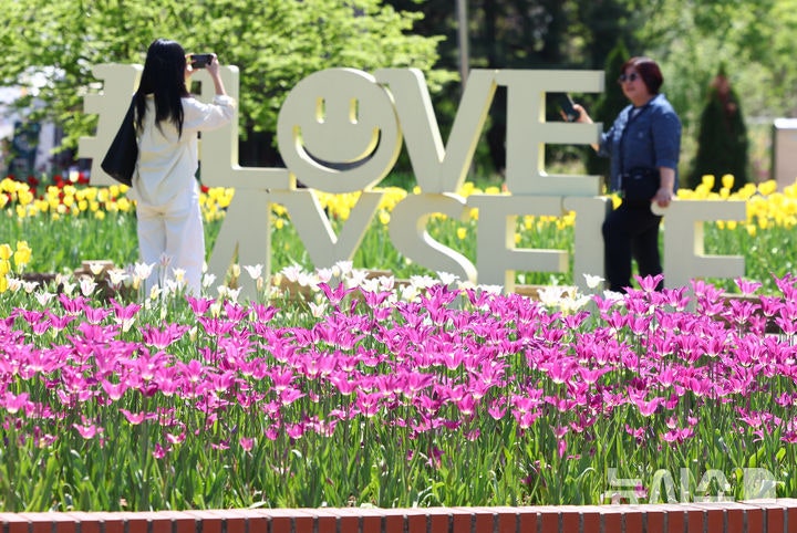 24일 경기 고양시 일산호수공원에서 개막한 2026 고양국제꽃박람회를 찾은 관람객들이 꽃을 관람하고 있다. 2026.04.24. hwang@newsis.com