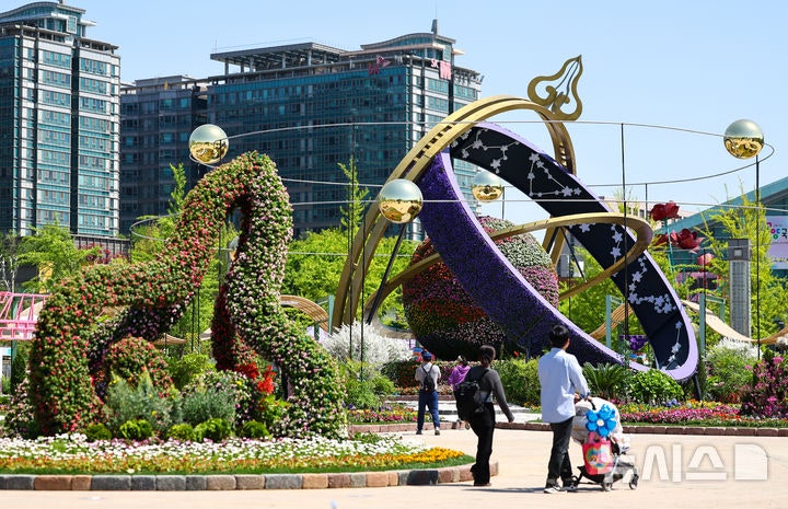 24일 경기 고양시 일산호수공원에서 개막한 2026 고양국제꽃박람회를 찾은 관람객들이 꽃을 관람하고 있다. 2026.04.24. hwang@newsis.com
